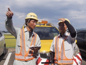 - 弊社は宮城県登米市を拠点に、県北部で道路工事、舗装工事を主体とし営業しています。最近ではインフラ設備の長命化を図るために、橋梁補修工事を行っております。また、我々が求められる場面は工事以外でも大雨災害や地震災害、家畜伝染病発生時の対応と様々です。人のために励む仕事、人に喜ばれる仕事、足跡が残る仕事を一緒にやってみましょう。