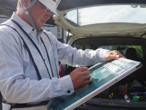 - 9:00現場で測量や丁張掛け・工事写真の撮影を行います。